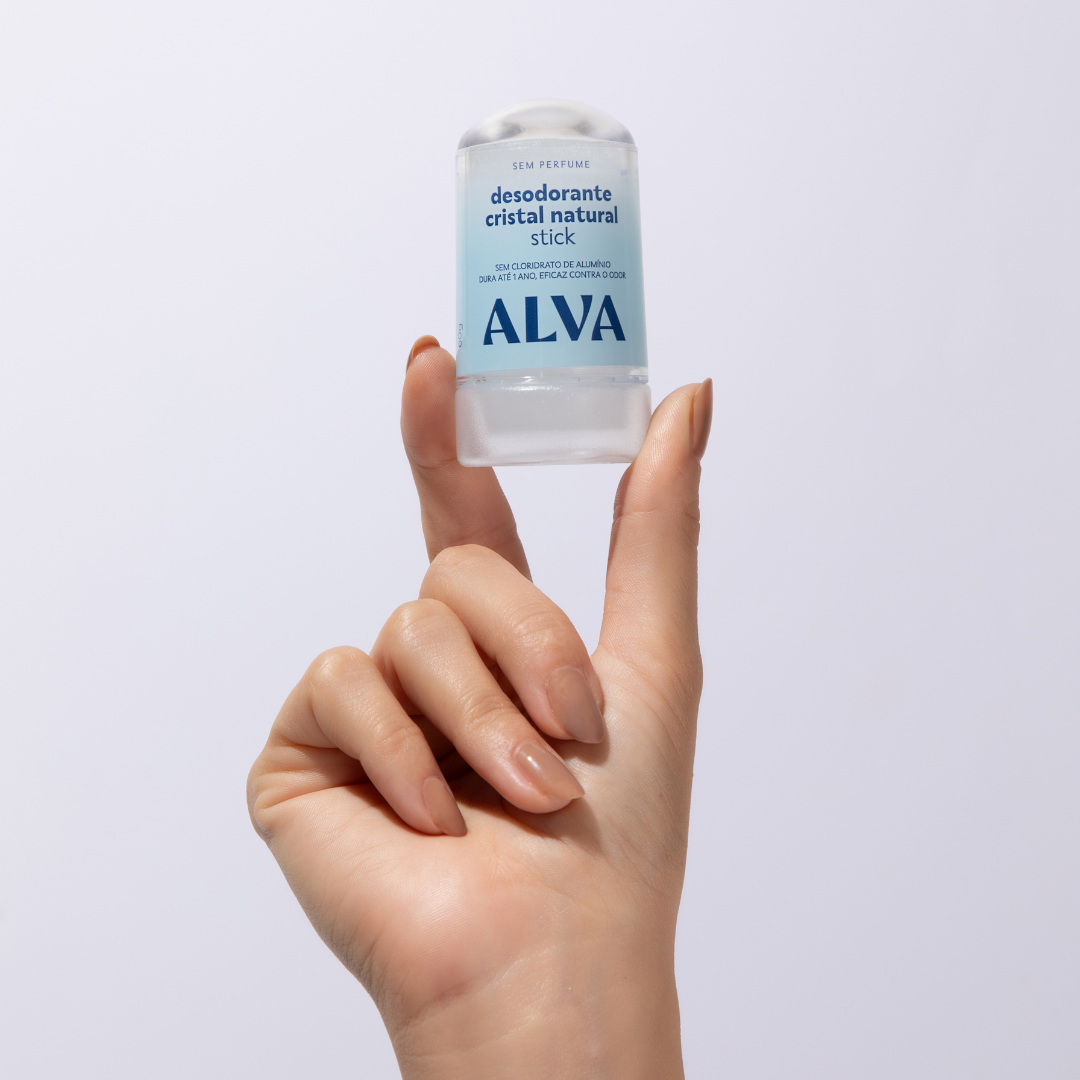 → Cristal Alva 60g: Desodorante que dura 1 ano, mesmo com uso diário.