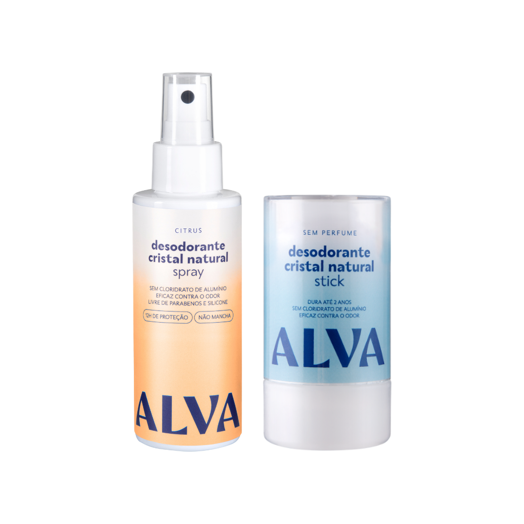 Contém um Desodorante Cristal 120g e um Desodorante Spray Citrus 120ml. Os dois combatem o mau odor, oferecem até 12 horas de proteção e não bloqueiam a transpiração natural. São naturais, livres de cloridrato de alumínio, álcool e ingredientes sintéticos.